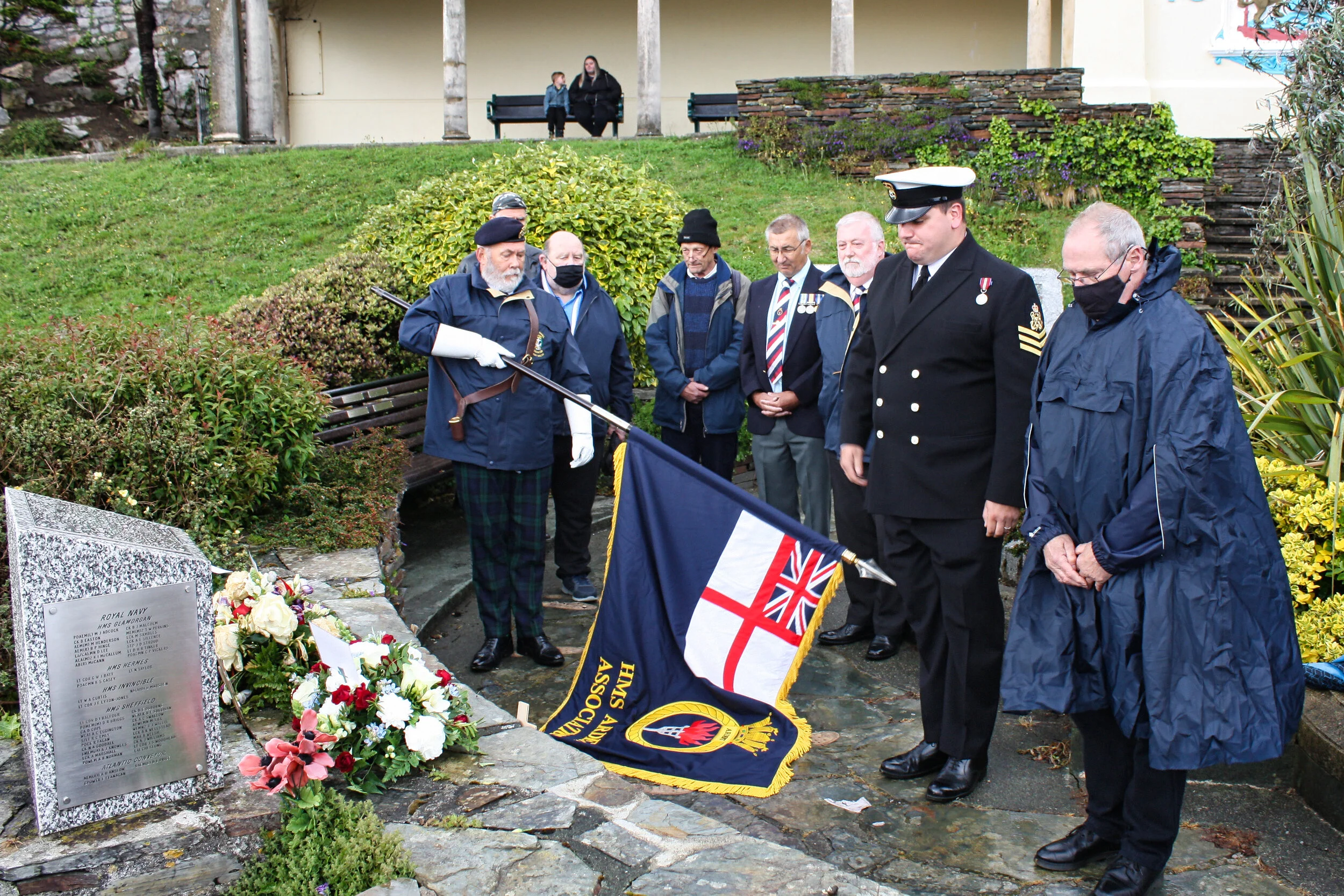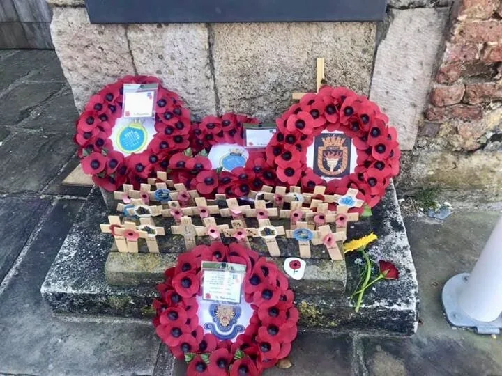 Social distancing means we can not be together in person this year to remember them but that does not stop us in the virtual world. Shipmate Stephen Earp, with his 2 daughters, carried out a private floral tribute to our shipmates in the Rose Garden on Plymouth Hoe.